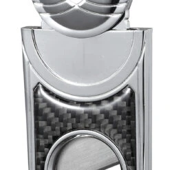 Visol Chrome With Metallic Blue Carbon Fiber And Matte Black Handle Single Blade Cigar Cutter