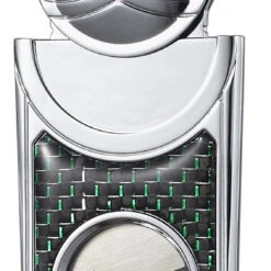 Visol Chrome With Metallic Green Carbon Fiber And Matte Black Handle Single Blade Cigar Cutter