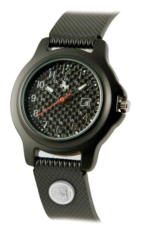 Black finish brass case, stainless steel back, carbon fiber dial, polyurethane strap