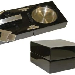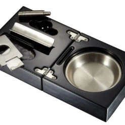 The compact and beautiful Bremen from Visol is a wonderful gift for any cigar smoker. The heavy wooden box is finished in black lacquer. Look inside to find a stainless steel cigar rest, an easily removable ashtray bowl, cigar punch and cigar cutter. The rest fits in the bowl when you close the box, ensuring that only those who share your cigars will know what’s inside. Stand the stainless steel single guillotine blade cutter in the slot beside the bowl and let your trimmings from up to a 54 ring gauge cigar fall where they belong. If you prefer a punch, use the 7mm stainless steel punch included in the kit. Use the post to eject remnants into the cap, where they can stay until you can dispose of them properly. Give the Bremen to your favorite cigar aficionado on the move. Order today. Engraving is not offered on this item.