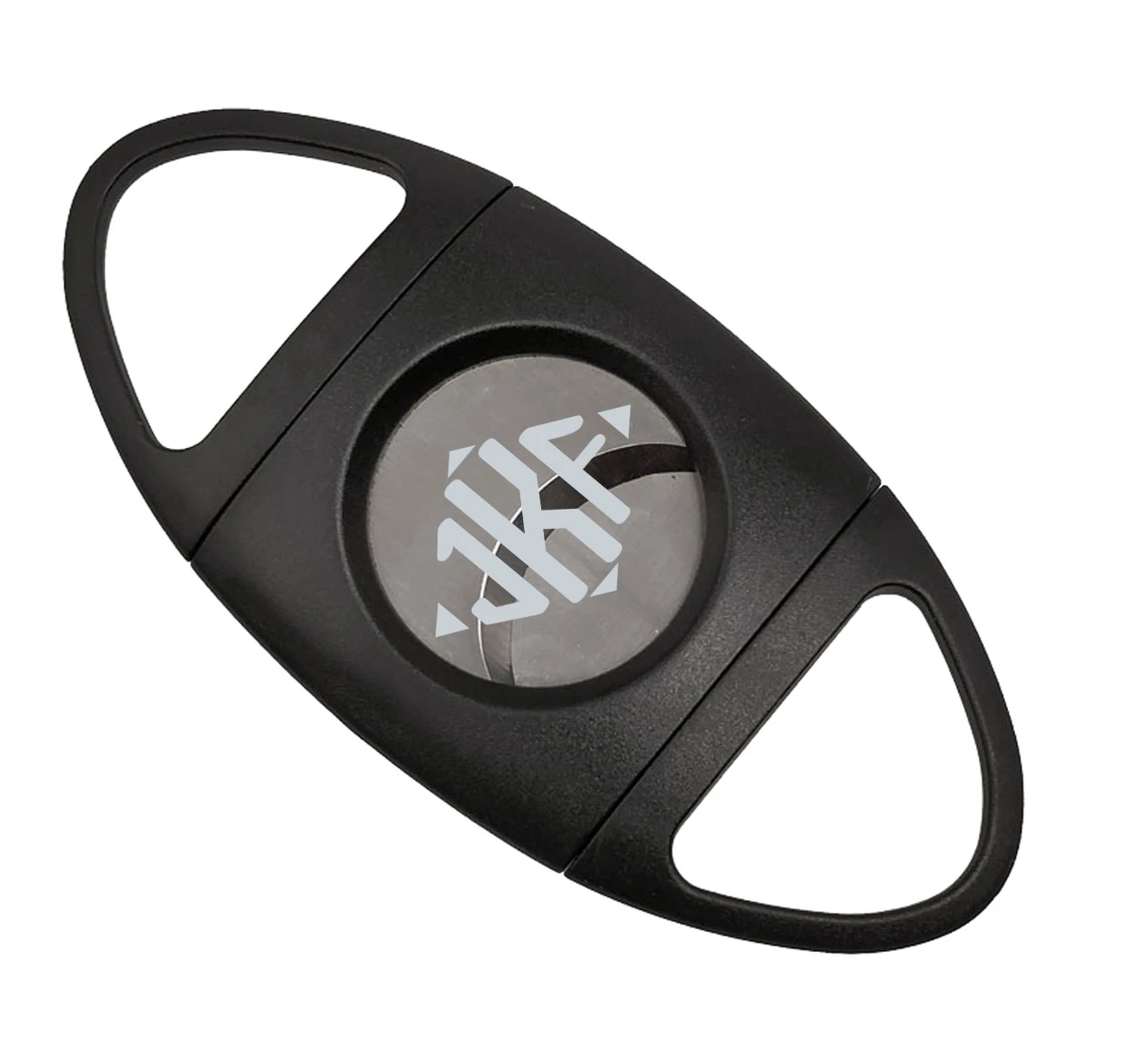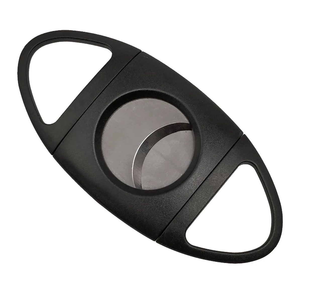 Constructed from heavy duty stainless steel, this double bladed cigar cutter makes an excellent addition to any cigar connoisseur’s collection. The paired blades are razor sharp and come together with a satisfying click, and are sure to result in a clean, quick cut every time you are ready to enjoy one of your favorite cigars. Matte Black Finish over Stainless Steel Construction Paired Stainless Steel Cutting Blades Approximate Dimensions: 3.7 x 1.8 x 0.3 inches; Weighs 0.3 pounds approx. Can Cut up to a 56 Ring Gauge Cigar Pair of Large Handles for Easy Opening and Closing/Cutting action