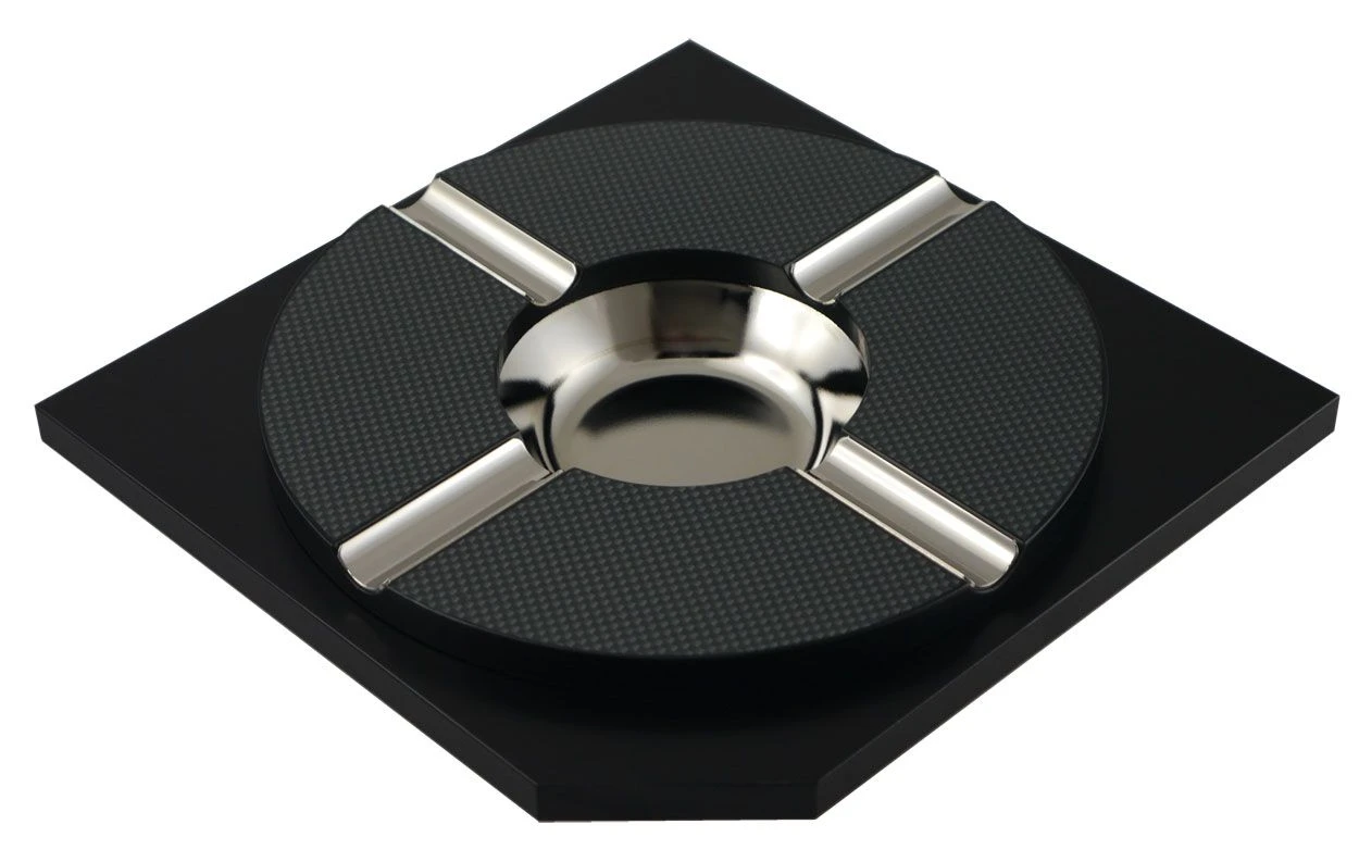 Don’t disrupt the decor of an office with an unattractive ashtray! The Checkmate is handsomely dressed in polished wood and carbon fiber that won’t compete for attention among the other items in the room. The stainless steel rests and basin complement the wood while providing their services to you and guests. Matte Black Finish over Wooden Base; Carbon Fiber Inner Ring; Stainless Steel Cigar Rests and Ash Basin Four Stainless Steel Cigar Rests Located At Equal Intervals Approximate Dimensions – 7.7″ x 7.7″ x 1.6″ Soft Felt-Lined Bottom Helps to Avoid Scuffing and Scratching Your Furniture Comes in Visol Branded Box for Easy Gift Giving; Perfect Gift for Birthdays, Fathers Day, Graduations