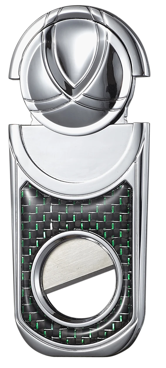 Chrome Finish with Metallic Green Carbon Fiber Plate on Front Side of Cutter