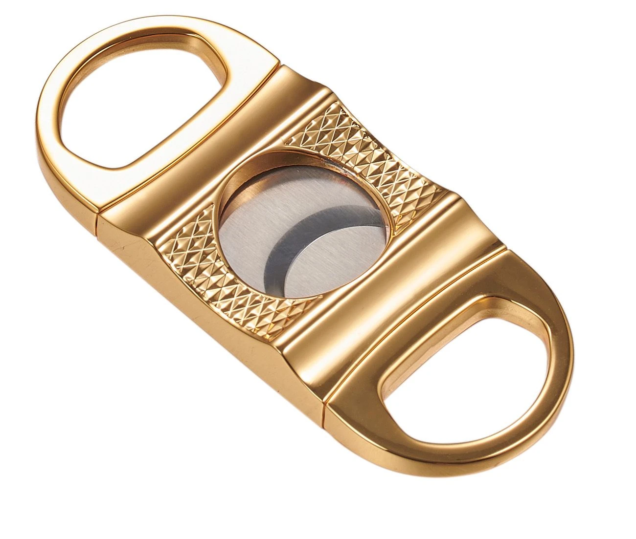 Visol Chrome With Metallic Blue Carbon Fiber And Matte Black Handle Single Blade Cigar Cutter