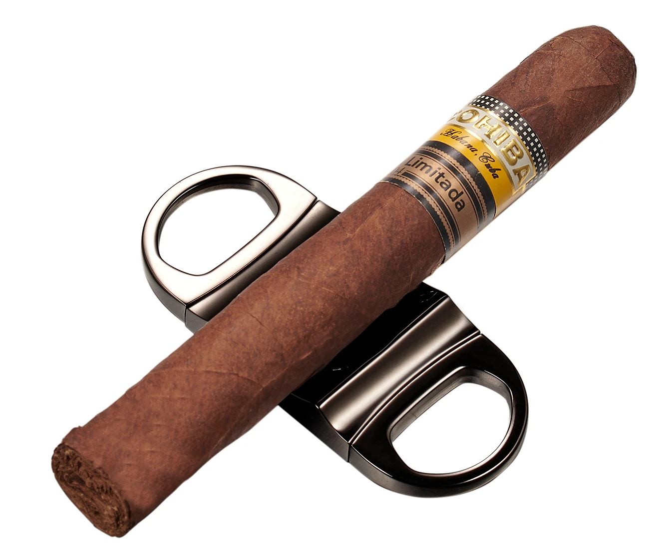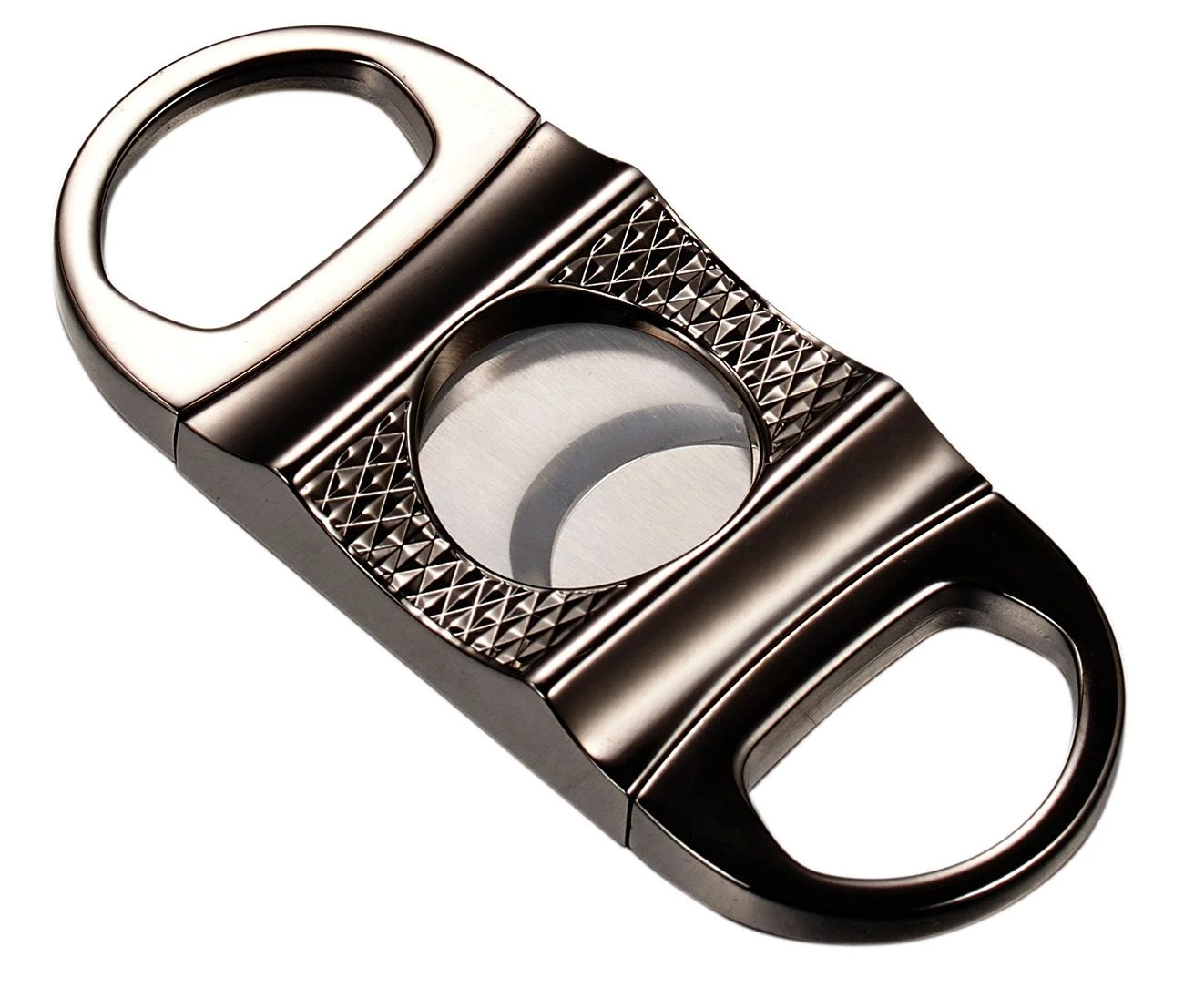 Visol Chrome With Metallic Blue Carbon Fiber And Matte Black Handle Single Blade Cigar Cutter