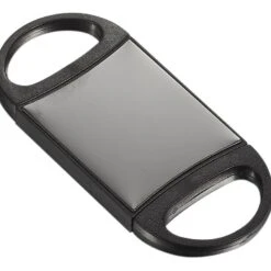 This single sided plastic and metal dual bladed cigar cutter makes the perfect choice for anyone looking for a stylish and economic choice in cigar cutters! The lightweight plastic construction is still high quality and protects the razor sharp blades to ensure an excellent cut every single time Matte Black Finish, Gunmetal Stainless Steel Plate On Back Side; Cuts up to 54 ring gauge cigars Lightweight; Classic Double Guillotine Cigar Blades; Gives your Cigar Precise, Clean Cut Approximate Dimensions: 3.5 inches by 1.6 inches x 0.3 inches Affordable and Functional Tool to add to Cigar Collection; Perfect as a Gift to Any Cigar Aficionado! Comes Packaged in Clear Plastic Bag; Can be Easily Gift wrapped Product ID: VCUT414GM